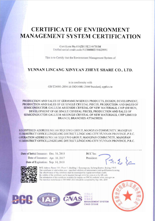 環(huán)境管理體系認(rèn)證證書(shū)(英文)